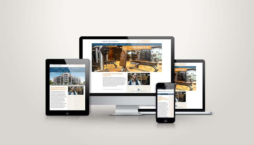 FirmDesign specializes in the multi-family industry. The Pearl Midtown website highlights one of Houston's top A properties. The site features modern web technology such as responsive design and a custom content management system.