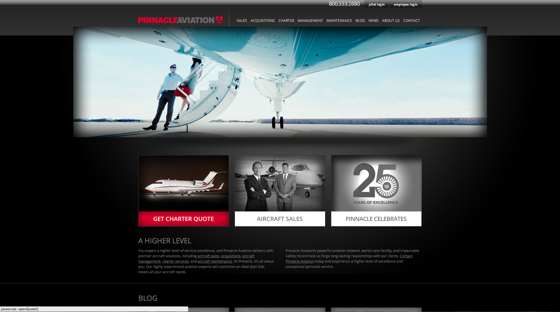 One of the premiere private air charter companies, Pinnacle Aviation contracted FirmDesign to create a sleek, easy to navigate website. It features a range map built with full content management capabilities.